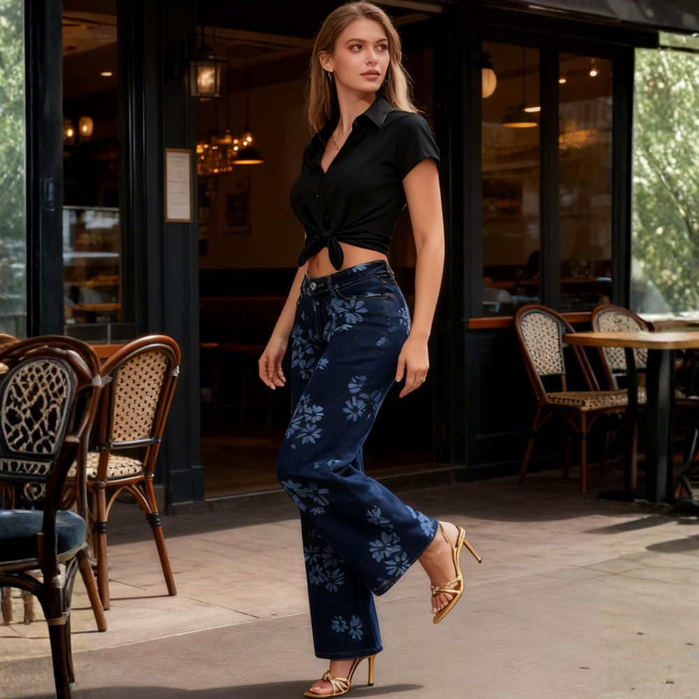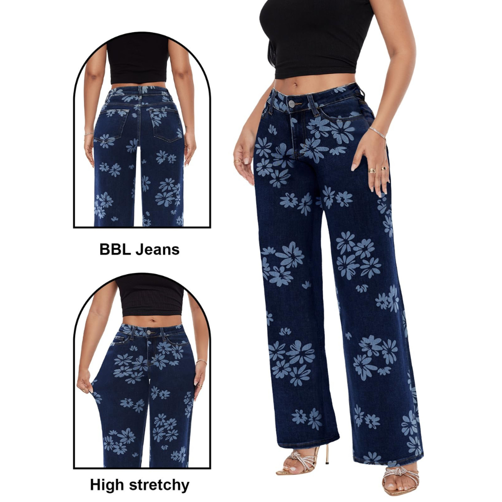 ג'ינס רחב בגזרה בינונית-נמוכה של MODEVA™